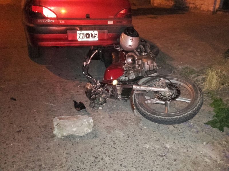 Perdió el control de la moto que manejaba y terminó debajo de un auto