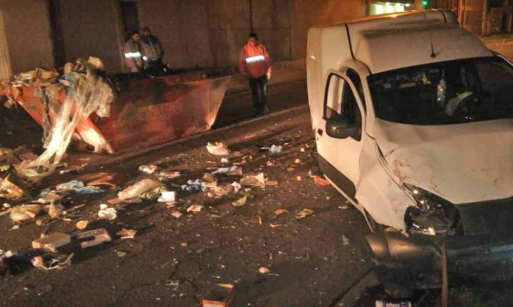 Perdió el control del vehículo que manejaba y chocó contra un contenedor