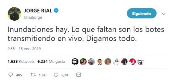 Dos meses más tarde, Rial y Gutiérrez volvieron a enfrentarse por el mismo motivo. “Inundaciones hay. Lo que faltan son los botes transmitiendo en vivo. Digamos todo”, escribió el conductor, esta vez sin mencionar a la periodista. Sin embargo, Mónica se hizo cargo y le contestó.