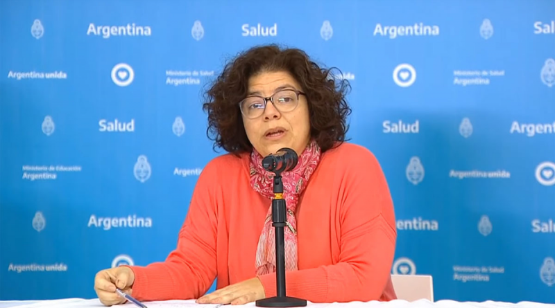 Al encabezar el informe, la secretaria de Acceso a la Salud, Carla Vizzotti, señaló el descenso al 19% de los casos confirmados que tienen relación con viajes y el ascenso a 43% de quienes tuvieron “contacto estrecho” con personas con coronavirus, por lo que pidió mantener los recaudos para evitar los contagios dentro de las casas.