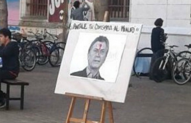 Un afiche con una foto del presidente Mauricio Macri con un tiro en la frente desató la polémica ayer en la Universidad de Rosario.