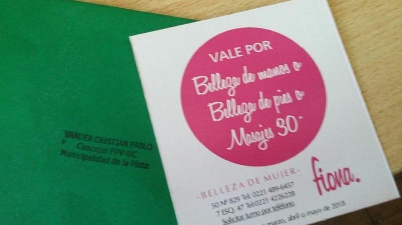 Se trata del edil platense de Unidad Ciudadana Cristian Vander. El repudiable regalo incluye tratamiento de manicuría, pedicuría y masajes.