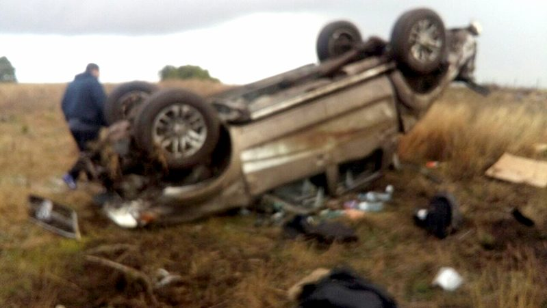 Una camioneta Toyota Hilux con tres personas a bordo volcó ayer a causa de una intensa granizada que se produjo en un sector de la ruta 72, que une a la ruta 3 con las localidades de Oriente, Copetonas y Reta.