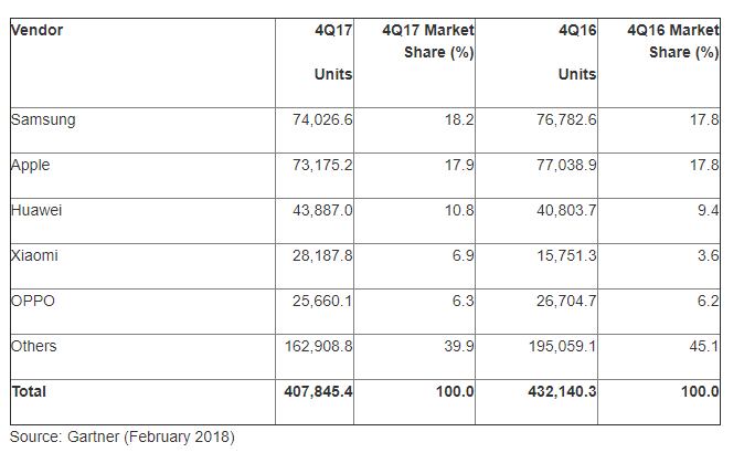 Aún así, no todas las empresas ven el dato como algo negativo ya que, por ejemplo, Samsung subió su cuota de mercado de un 17.8% a un 18.2%, quedando por encima de Apple, su principal competidor.