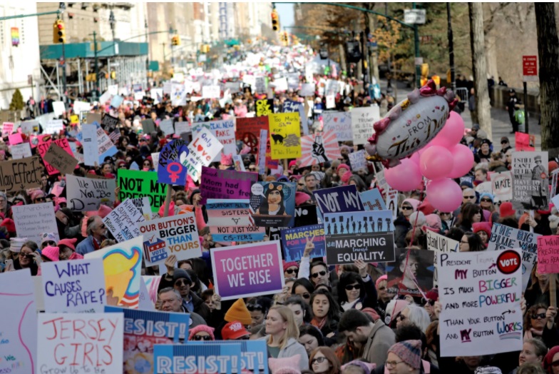 Miles de manifestantes portaban carteles con mensajes que incluían “Pelea como una niña” y “El lugar de una mujer es en la Casa Blanca”. Más de 300 pueblos y ciudades están organizando marchas y protestas por el aniversario de la presidencia de Trump, aunque no todas están relacionadas entre sí.