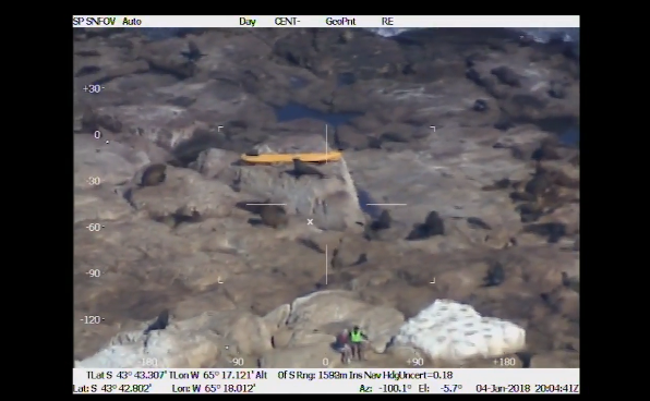 Los efectivos de la Prefectura Naval –institución que comanda Eduardo Scarzello- dispusieron en primer lugar de un avión que decoló desde la Estación Aérea de Comodoro Rivadavia y detectó a los damnificados en la denominada Isla Escondida. A partir de ello, se desplegó personal especializado a bordo de un helicóptero, que realizó con éxito las tareas de rescate y evacuación.