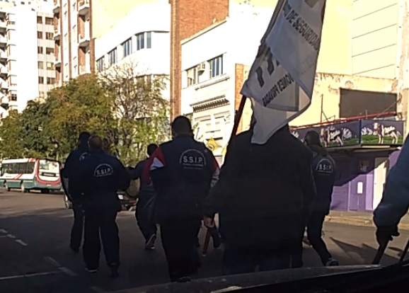 El Sindicato de Seguridad e Investigaciones Privadas se manifestó frente a la sede de la Universidad Nacional del Sur de Colón 80 por el despido de varios trabajadores.