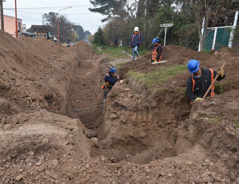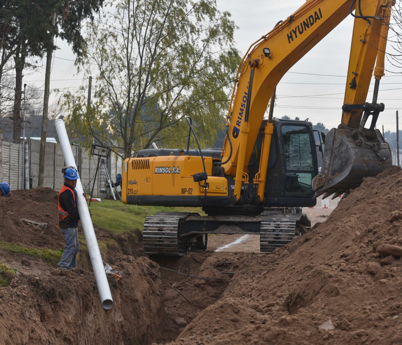 Al mismo tiempo, y con un 17% ejecutado, se concretan estas tareas en el barrio Altos de Palihue. En este caso son 5024 metros lineales con 205 conexiones domiciliarias previstas.