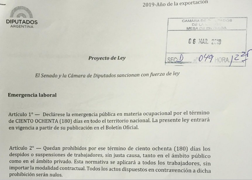Proponen declarar la Emergencia Laboral y prohibir despidos y suspensiones por 180 días