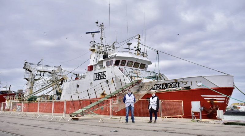 Antes del inicio de la operatoria portuaria se activó el protocolo de recepción de pesqueros: supervisión de declaración jurada de salud de todos los tripulantes y toma de temperatura y control clínico a bordo realizado por el equipo médico del Puerto de Bahía Blanca.
