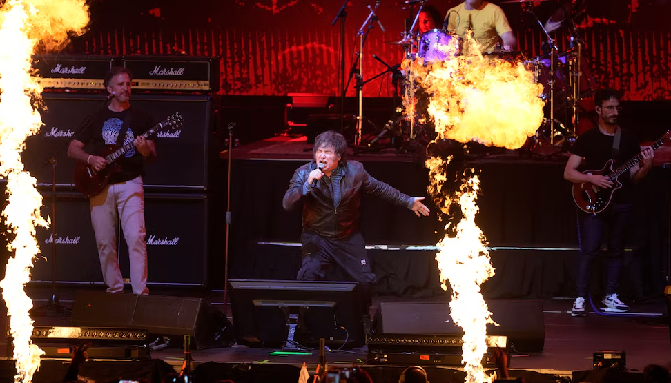 El presidente Javier Milei presentó este lunes su nuevo libro con un show de rock en el Movistar Arena y le pidió a sus seguidores que “no aflojen” porque, dijo, “hay que terminar de pasar el río”, en la recta final para las elecciones legislativas del 26 de octubre.