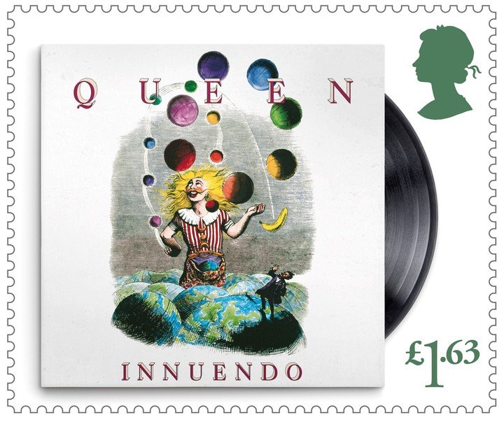 Las tapas de los discos que tendrán estampilla propia son Queen II (1974), Sheer Heart Attack (1974), A Night at the Opera (1975), News of the World (1977), The Game (1980), Greatest Hits (1981), The Works (1984) e Innuendo (1991).