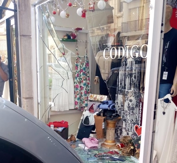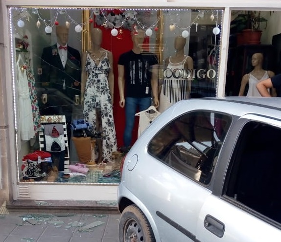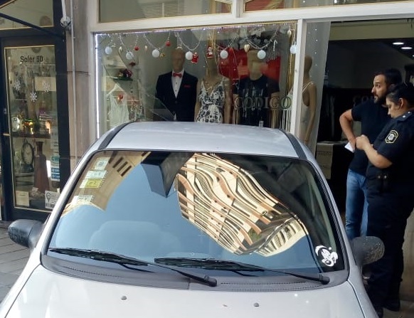 Un conductor que intentaba estacionar en la primera cuadra de calle Soler perdió el control el auto, se subió a la vereda y rompió la vidriera de un comercio.