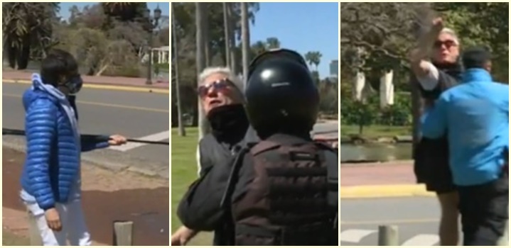 Roberto Funes Ugarte fue agredido por un transeúnte mientras realizaba este lunes un móvil en los bosques de Palermo en el marco de los festejos por el día de la primavera en medio de la pandemia de coronavirus.