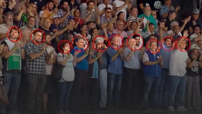 Entre los sindicalistas que estuvieron con Moyano se vio a Roberto Baradel, del Sindicato Unificado de Trabajadores de la Educación de Buenos Aires (SUTEBA); Julio Piumato, de la Unión de Empleados Judiciales; Néstor Segovia, secretario adjunto de Metrodelegados; Daniel Catalano, secretario general de ATE; Esteban Castro, de la Confederación de Trabajadores de la Economía Popular (CTEP); Daniel Menéndez, de Barrios de Pie; Sonia Alesso, de la Confederación de Trabajadores de la Educación (CTERA); Pablo Micheli, titular de la CTA Autónoma; Hugo Yasky, secretario general de la Central de Trabajadores de la Argentina (CTA); Omar Plaini, del Sindicato de Vendedores de Diarios y Revistas (SIVENDIA); Sergio Palazzo, de la Asociación Bancaria y Pablo Moyano, secretario adjunto de Camioneros.