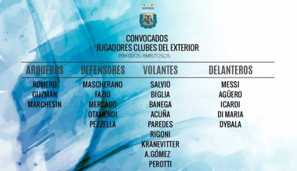Dichos jugadores practicarán entonces en Rusia junto a los 20 citados por Beccacece, que conformó la siguiente nómina: