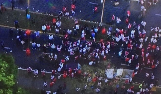 Ante la presión de la gente por entrar al estadio, la Policía reprimió con balas de goma y gas pimienta. Se produjeron corridas e incidentes.