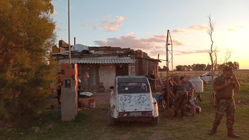 En esos domicilios, personal del Comando de Prevención Rural (CPR) de Tres Arroyos secuestró teléfonos celulares, cortes cárnicos sin trazabilidad, una camioneta con pedido de secuestro, una moto, elementos de faena y un arma de fuego.