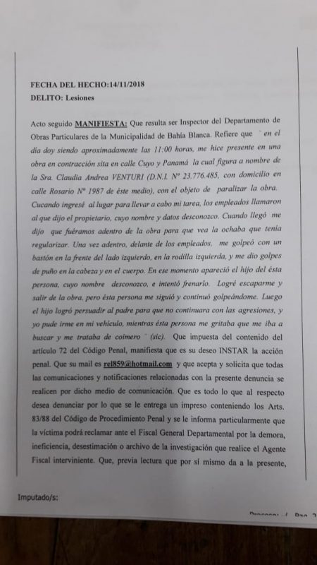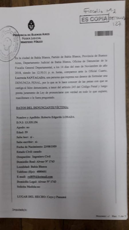 LA DENUNCIA PRESENTADA A LA JUSTICIA: