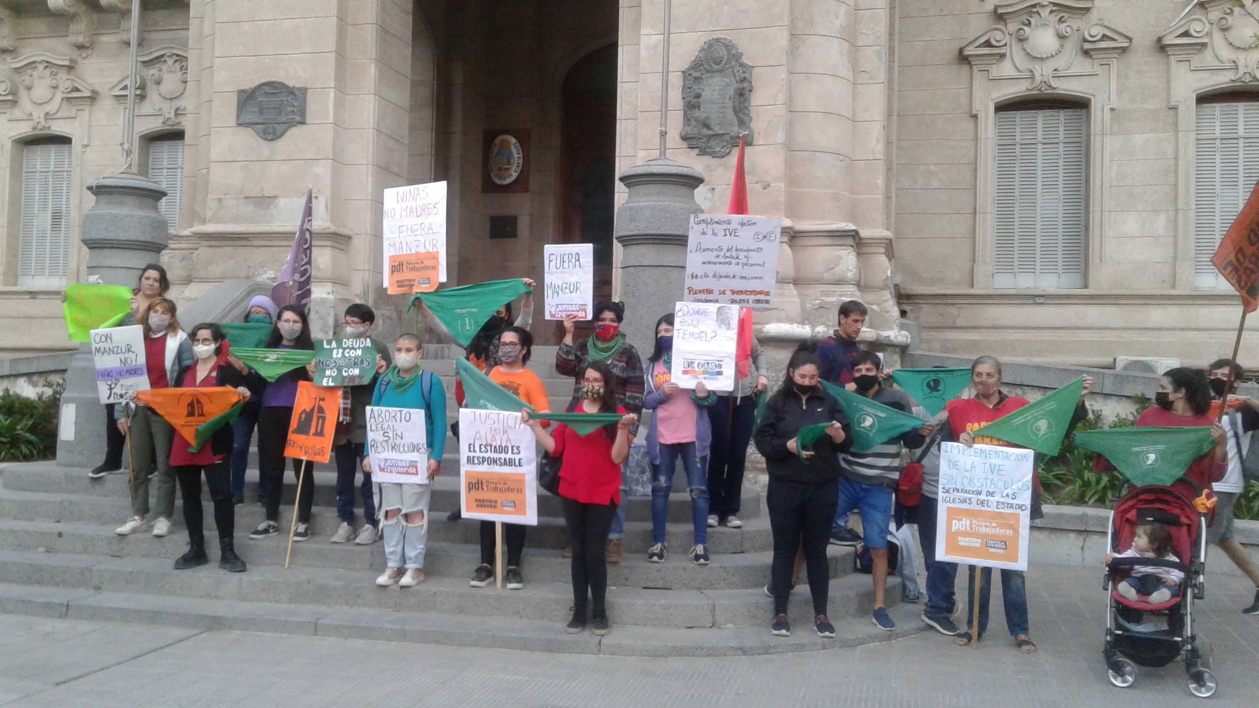 Con los característicos pañuelos verdes alzados, reclamaron además la liberación de quienes están “presas por abortar” y por que no haya más niñas “obligadas a gestar, parir y criar” y criticaron la designación de Juan Manzur, quien se manifestó en contra del aborto, como jefe de Gabinete de ministros.