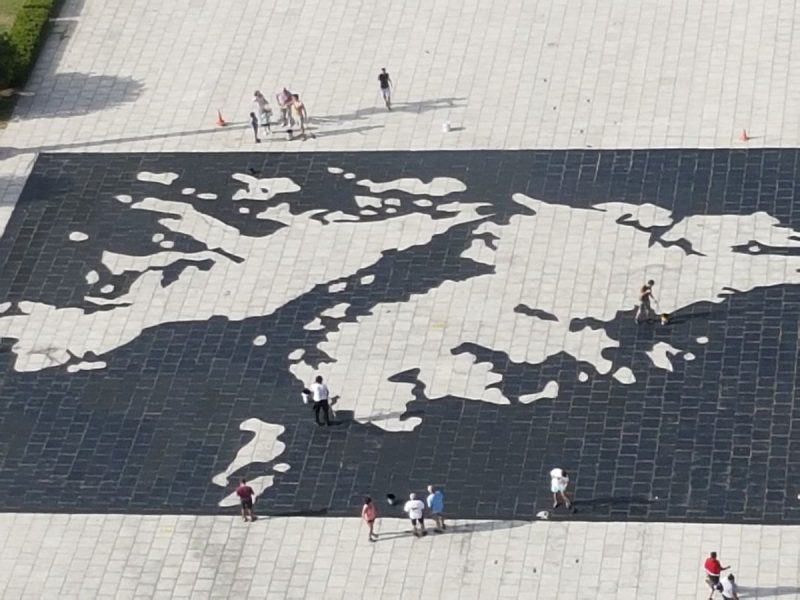 La imagen más grande del mundo de las Islas Malvinas fue recreada este domingo en la vereda de la Plaza Moreno de La Plata.