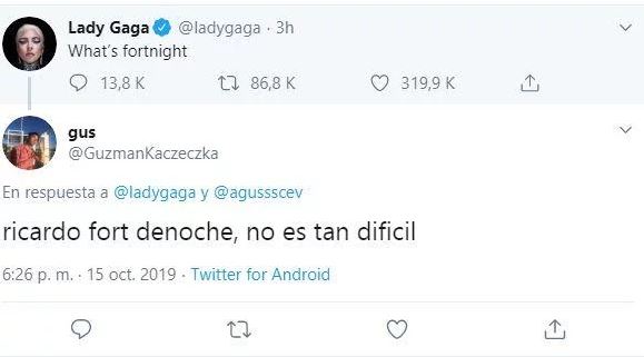 Redes Sociales : Lady Gaga quería referirse al Fortnite pero mencionó a Ricardo Fort y los usuarios estallaron de risa
