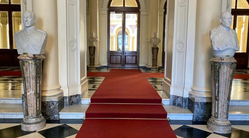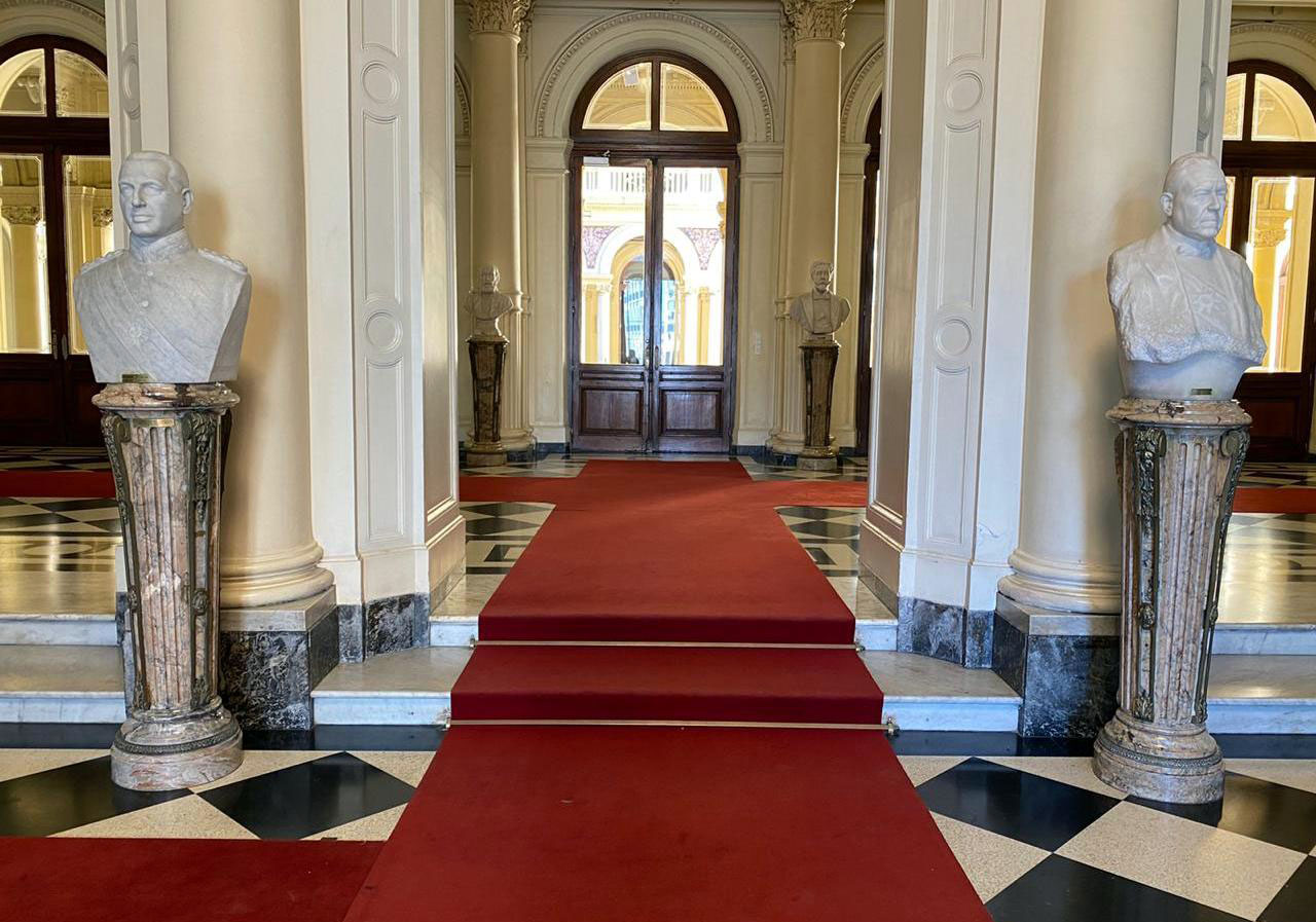 El busto de Yrigoyen se encuentra en el denominado Salón de los Bustos, en la entrada a la Casa Rosada por la explanada de la calle Rivadavia, por donde ingresan diariamente el presidente Alberto Fernández, los funcionarios e invitados.