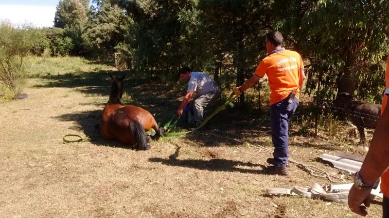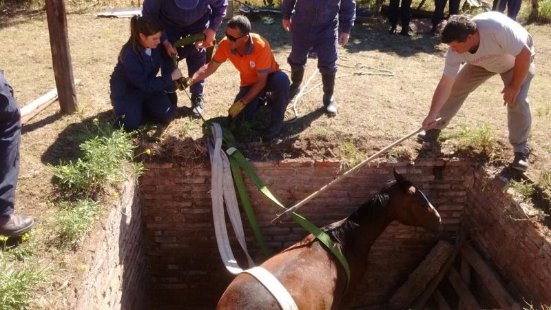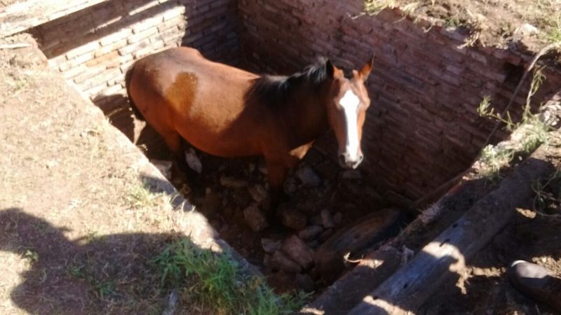 Un caballo cayó este jueves en un pozo de unos dos metros de profundizar en la calle Teresa Asencio 863 y debió ser rescatado por los bomberos, la Policía, Defensa Civil y personal de la Delegación Norte.