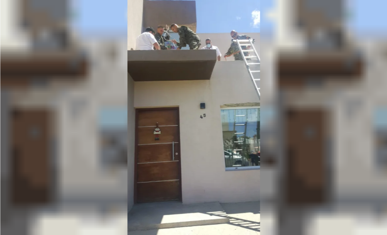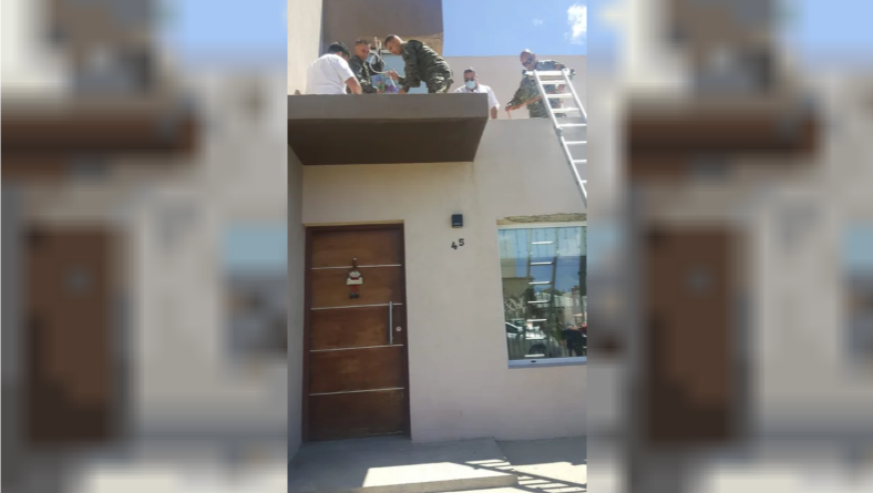 Cuando los bomberos llegaron a socorrer al militar se encontraron lo encontraron colgado de los cables, sostenido sobre las líneas de suspensión del paracaídas “haciendo pie” sobre la terraza de la vivienda.