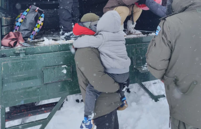 Rescataron a tres familias que quedaron varadas por el fuerte temporal de nieve en Mendoza