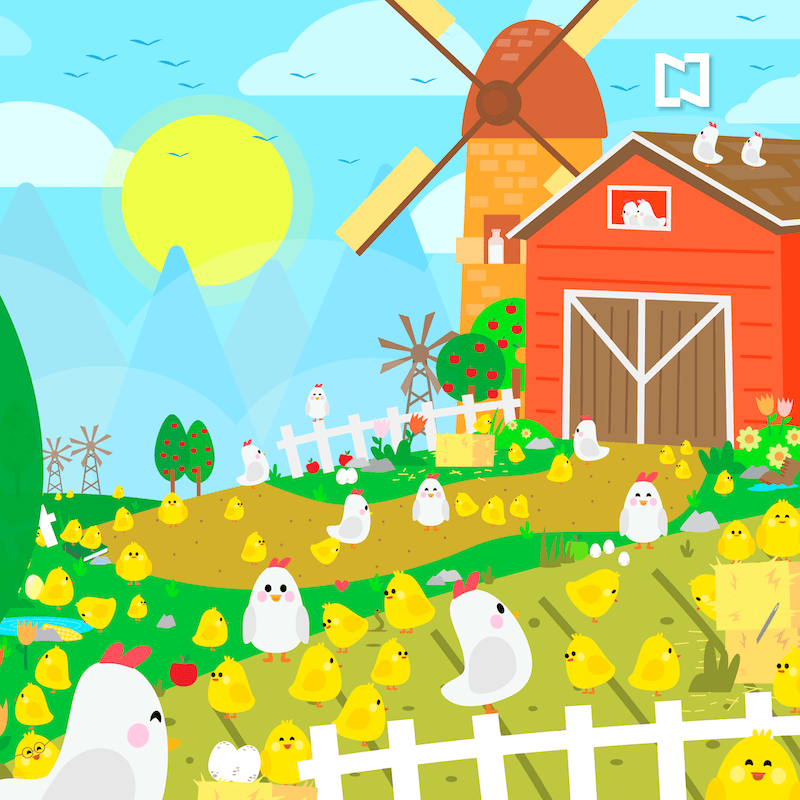 Dicha imagen animada consiste en una granja abierta, llena de animales, gallinas y pollitos, entre los más destacados. Hay diez objetos que son clave para encontrar.