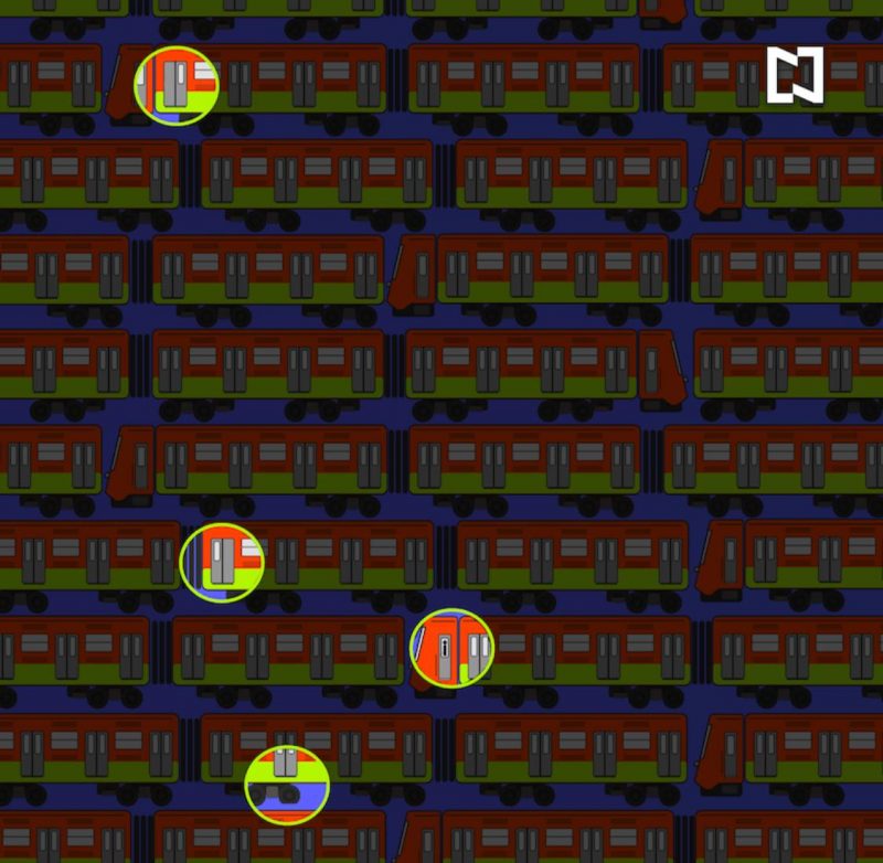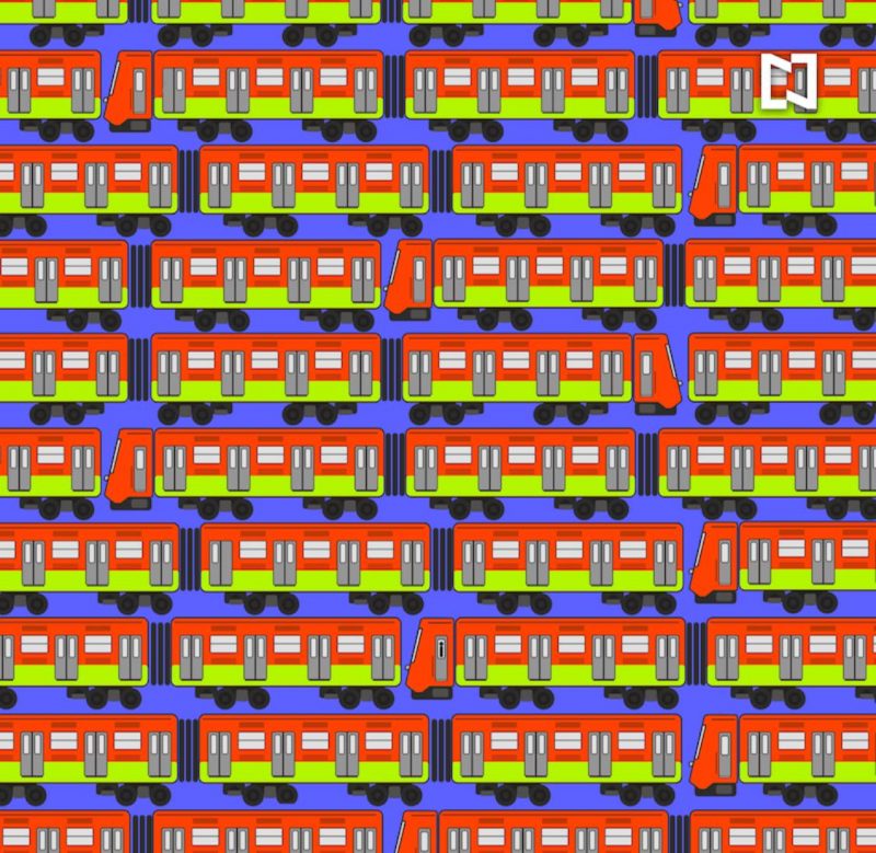 El desafío visual invita a encontrar un tren con conductor, dos puertas sin ventana y una rueda rota, que se encuentran escondidos en la imagen de unos vagones del transporte.