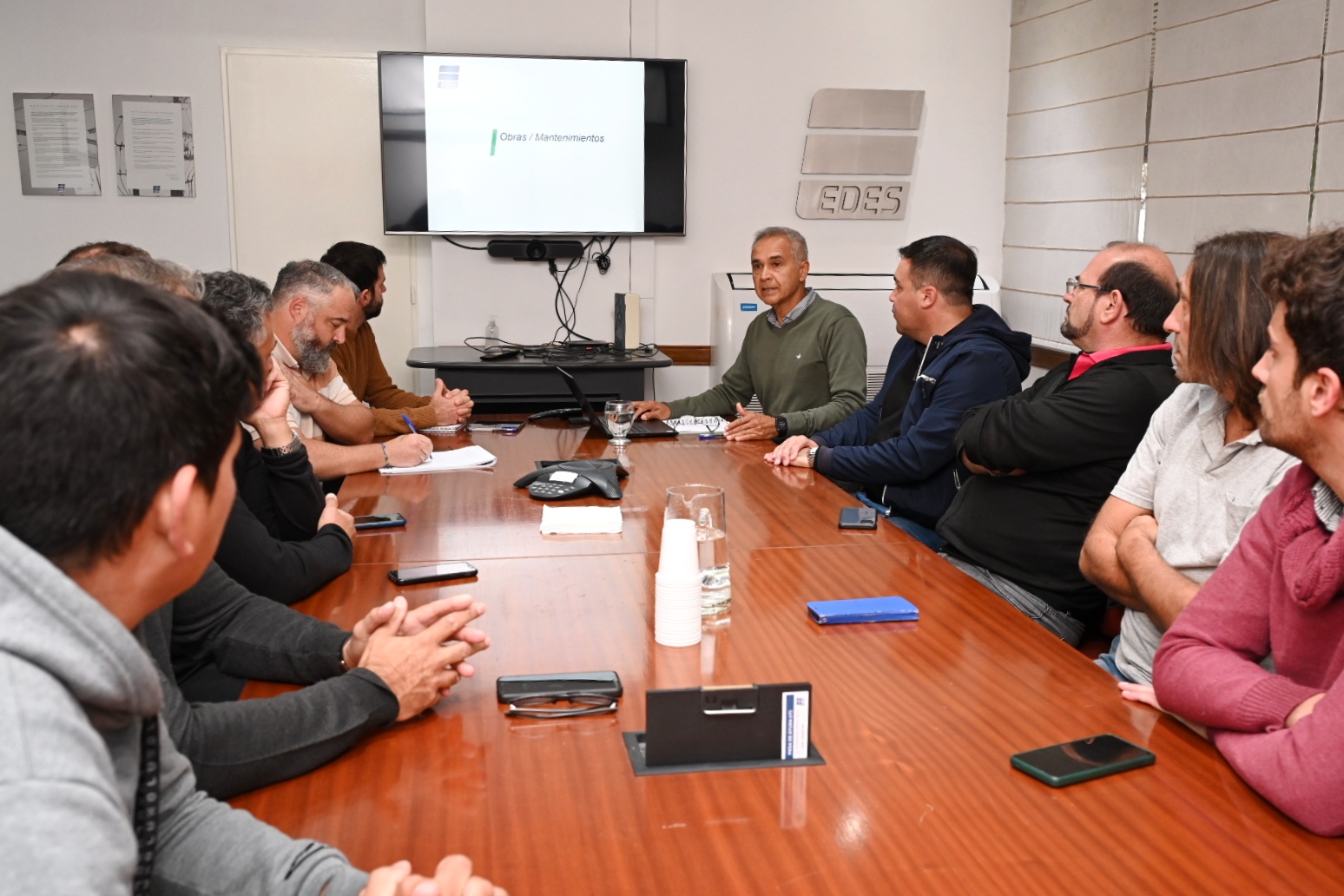 La reunión se llevó adelante en las oficinas principales de EDES, en Moreno 79, y participaron los delegados comunales, el asesor y coordinador del área de Delegaciones del Municipio, Fabián Tuya, y por parte de EDES, el ingeniero Julio Pérez, gerente de Operaciones, el ingeniero Sebastián Arnaudo, jefe Área Centro, y Pablo Schwerdt, responsable de Relaciones Institucionales y Prensa.