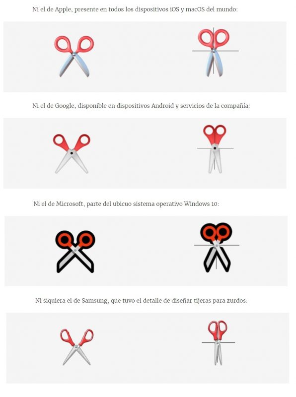 La investigación aclara que en cuanto a los emojis de tijeras para zurdos las que mejor cierran son las de Samsung y JoyPixels. Los diestros con LG, por su parte, parecen ser quienes se llevan el oro, ya que las mismas podrían cortar perfectamente.