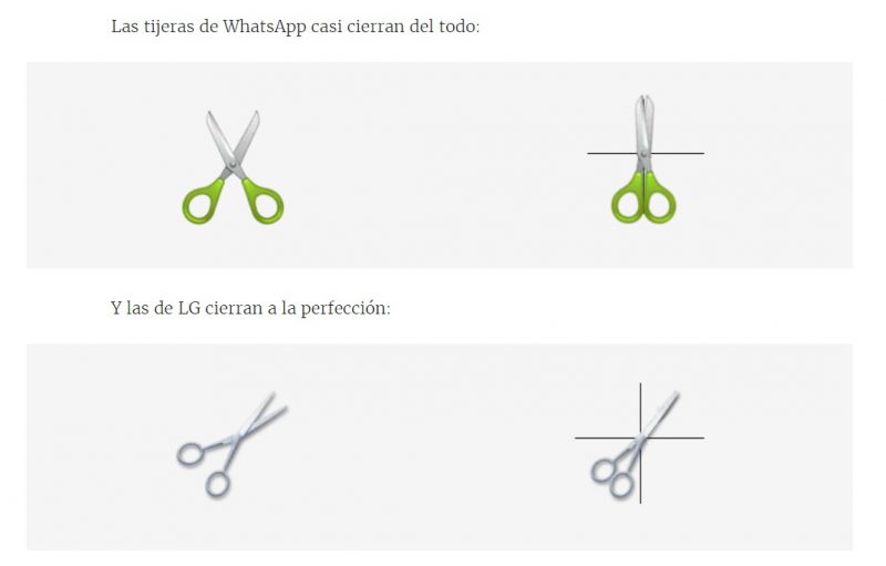 Para los fanáticos de WhatsApp, ¡felicitaciones!, su aplicación posee emojis que “cierran casi por completo”. Facebook, Google, Apple y Microsoft parecen ser los menos precisos: “los mangos chocan muy pronto y sería imposible cortar un papel”.