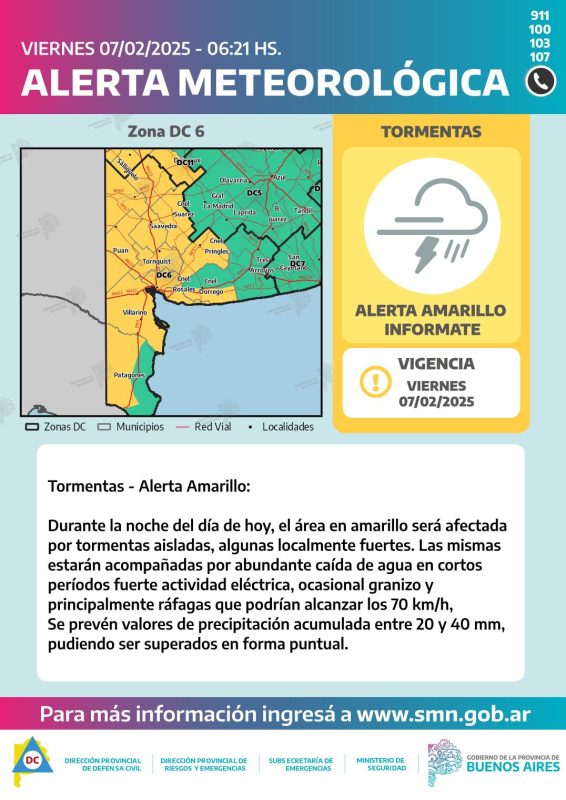 Durante la noche de este viernes, el área de Bahía Blanca será afectada por tormentas aisladas, algunas localmente fuertes, informó el municipio.