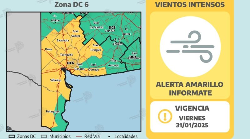 Por este motivo, rige un alerta amarillo para el SO bonaerense, lo que incluye a Bahía Blanca.