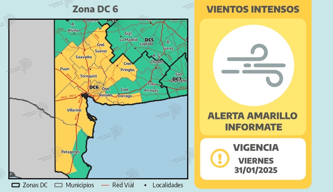 Por este motivo, rige un alerta amarillo para el SO bonaerense, lo que incluye a Bahía Blanca.