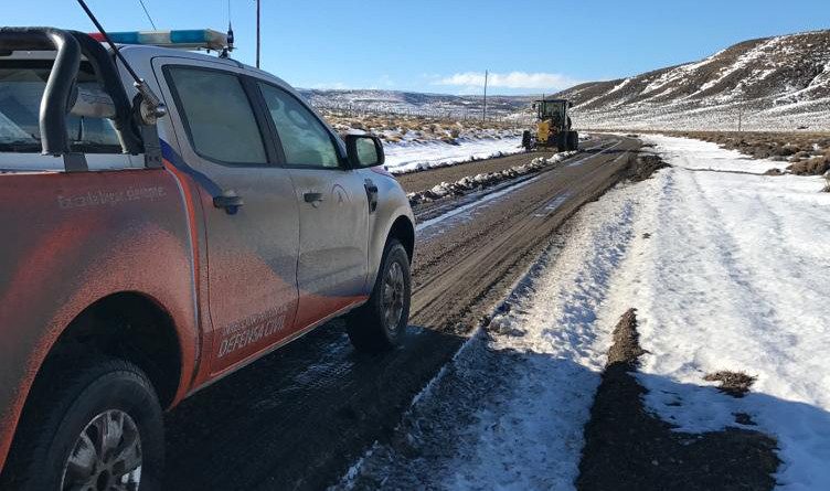 Personal de Defensa Civil de Río Negro realiza diferentes tareas de prevención, asistencia y acompañamiento a conductores de vehículos que transitan por las rutas de la región andina en el marco del temporal de lluvia y nieve que afecta la zona, informaron hoy oficialmente.