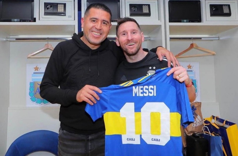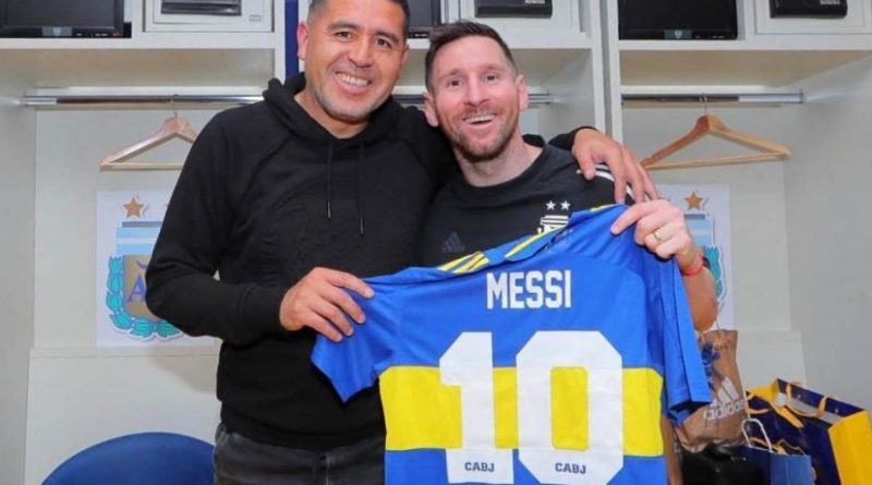 El vicepresidente de Boca, Juan Román Riquelme, le regaló una camiseta “xeneize” al capitán de la Selección argentina, Lionel Messi, tras el partido que la albiceleste le ganó a Venezuela 3 a 0 en “La Bombonera”, por las eliminatorias sudamericanas para el Mundial de Qatar 2022.