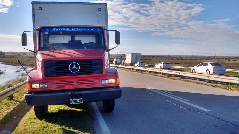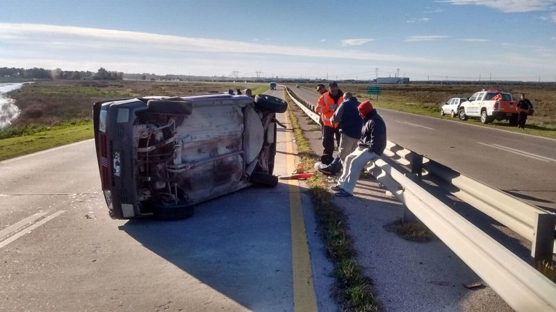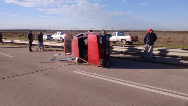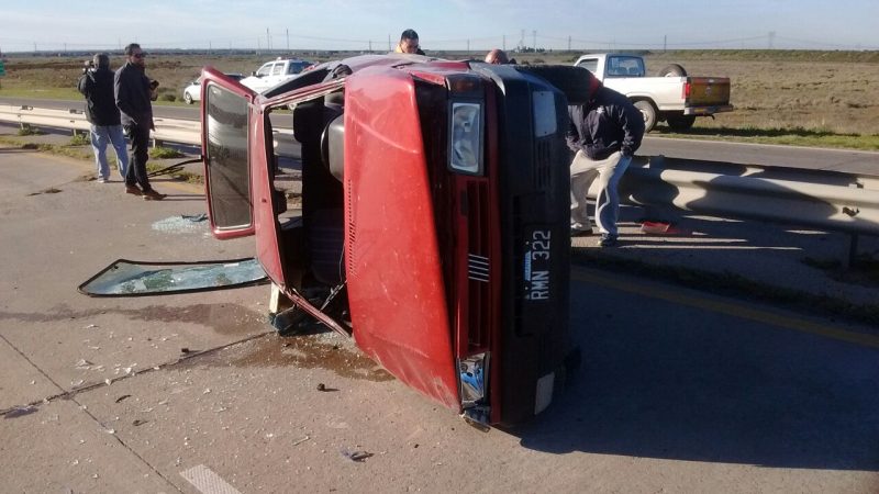 Un Fiat Uno que circulaba por el kilómetro 679 de la ruta 3 norte volcó este viernes luego de rozarse con un camión.