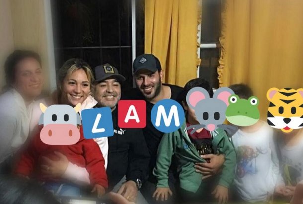 Este sábado, apareció la primera foto de Oliva y Maradona, acompañados de adultos y niños, publicada por Ángel de Brito.