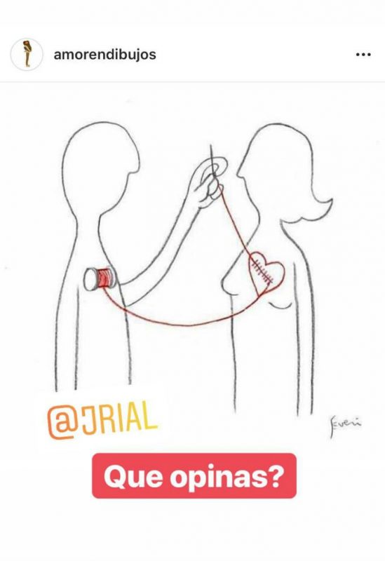 Parecería que Jorge sanó las heridas sentimentales del corazón de Romina y viceversa, o quizá la imagen haga referencia a que los dos cumplen el popular mito del hilo rojo.