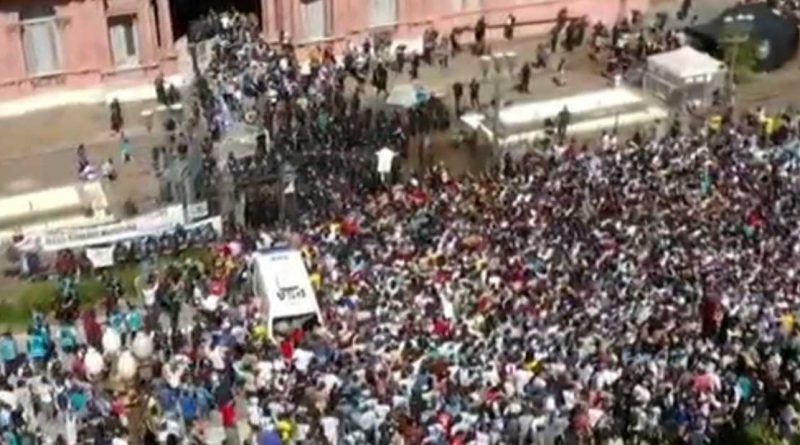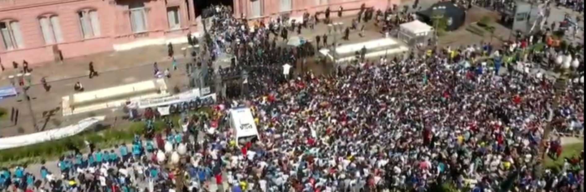En pleno velatorio de Diego Armando Maradona, fanáticos rompieron el vallado e ingresaron a Casa Rosada. Las fuerzas policiales Palacio Presidencial. Por tal motivo, se tuvo que suspender el funeral del astro del fútbol y, en este momento, no están ingresando los hinchas.