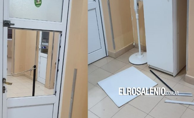 El hecho se produjo cuando María del Valle Chávez (27) rompió a golpes de puño el panel de la puerta de aluminio de ingreso de la guardia médica.