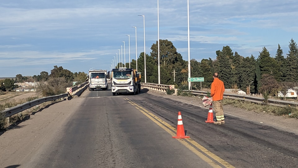 Un equipo de Vialidad Nacional inició hoy las reparaciones en el puente sobre el río Colorado, que une las provincias de Río Negro y La Pampa.
