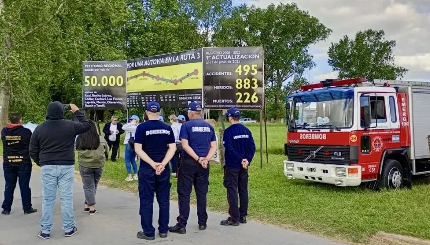La iniciativa fue impulsada por Estrellas Amarillas, la Fundación CEDA y los Vecinos Autoconvocados por la Autovía en la Ruta 3, con el objetivo de concientizar sobre la crítica situación vial y renovar el reclamo por obras concretas.