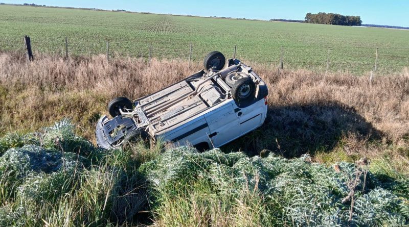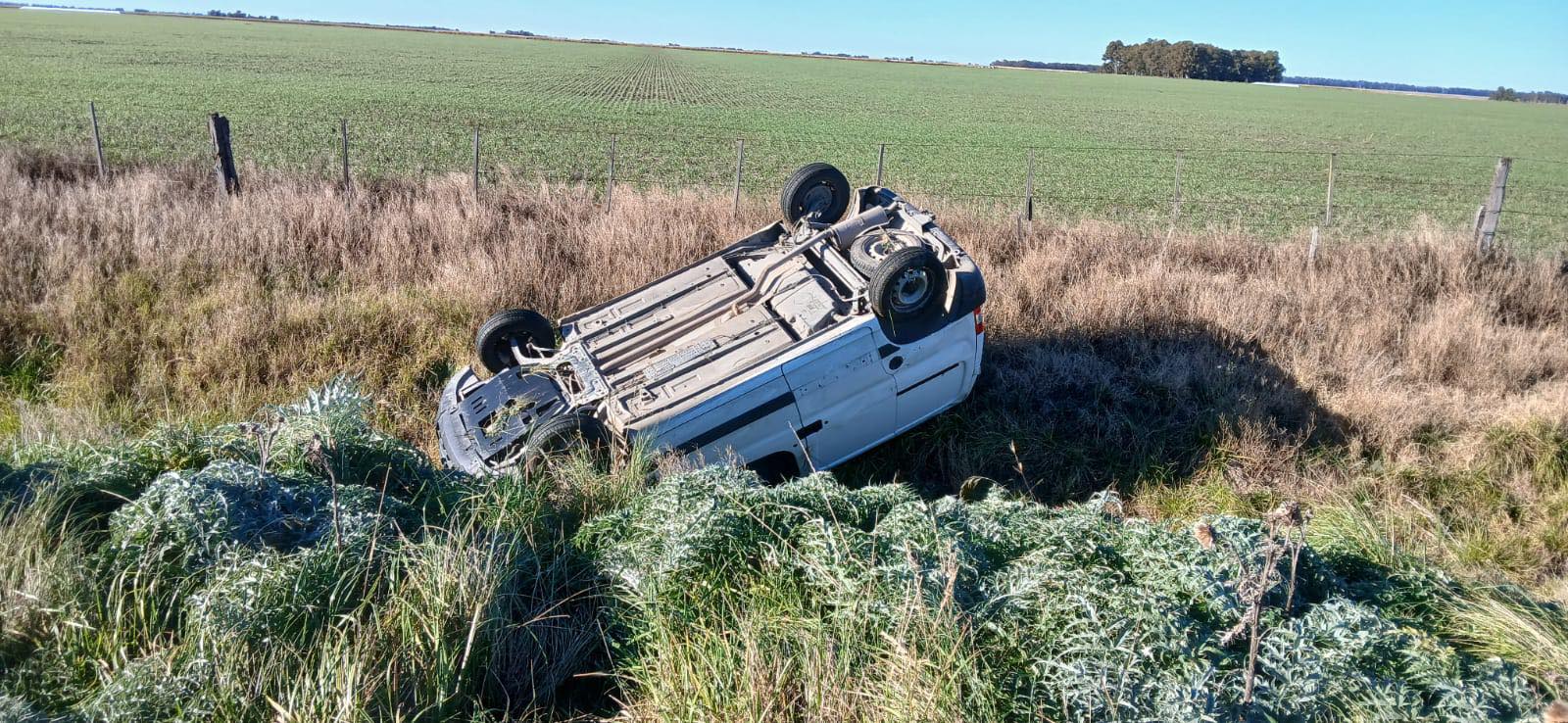 Una Peugeot Partner volcó hoy en el kilómetro 560 de la ruta nacional N° 3, en el distrito de Coronel Dorrego.