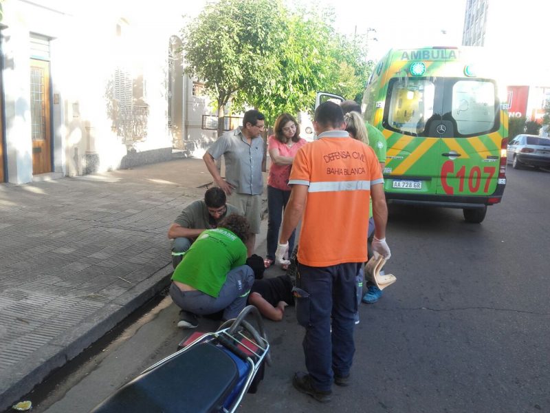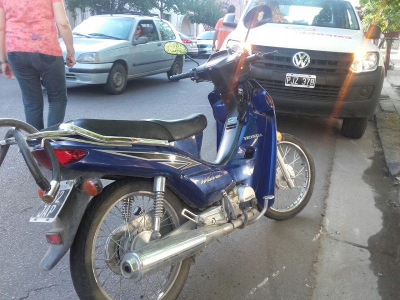 Un hombre que salía de su domicilio con el auto chocó a una mujer que transitaba por la calle con su moto y le generó raspaduras y golpes.