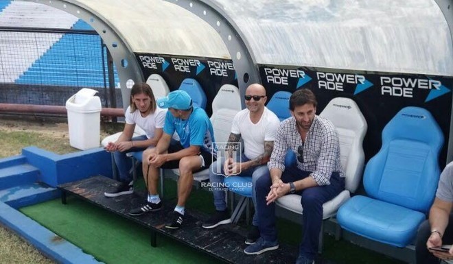 El entrenador de la Selección argentina, Jorge Sampaoli, junto a sus ayudantes Sebastián Beccacece y Jorge Desio, estuvieron este jueves en la cancha de Racing para presenciar el entrenamiento del plantel profesional.